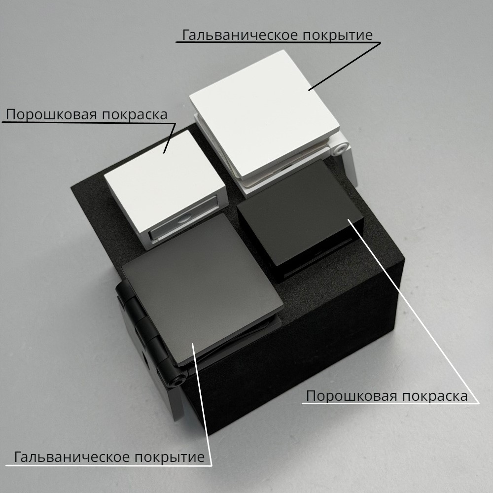 Разница в оттенках — это нормально. Чёрный и белый матовый на трубе (порошок) будет чуть глубже, чем на петле (гальваника). Это не брак, а следствие технологии.