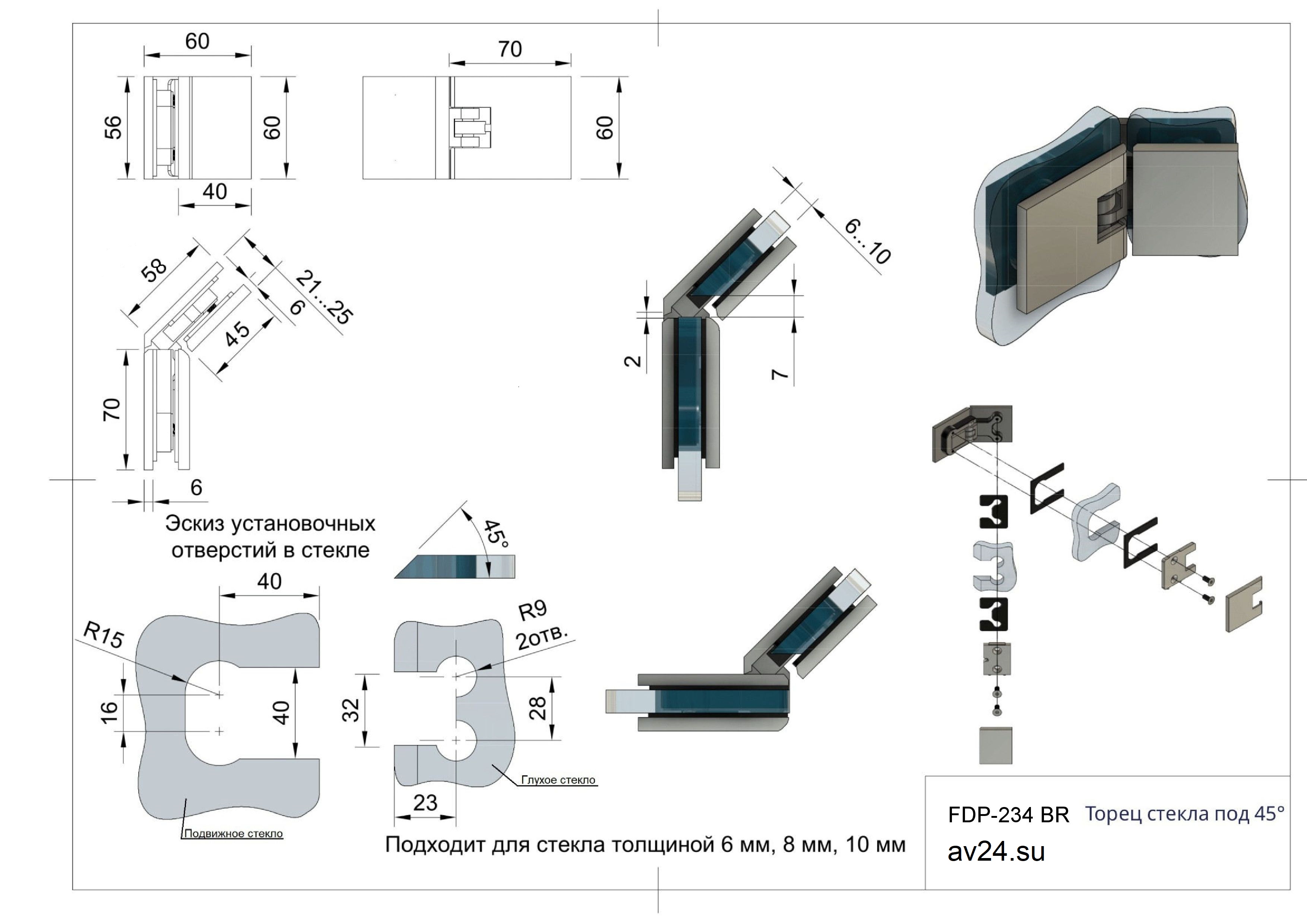 Петля FDP-234 — надёжное решение для монтажа стеклянных дверей душевых кабин. Изготовлена из прочной латуни и рассчитана на установку на стекло толщиной 6–10 мм. Конструкция предусматривает возможность монтажа на угол 135° со специальными крышками.