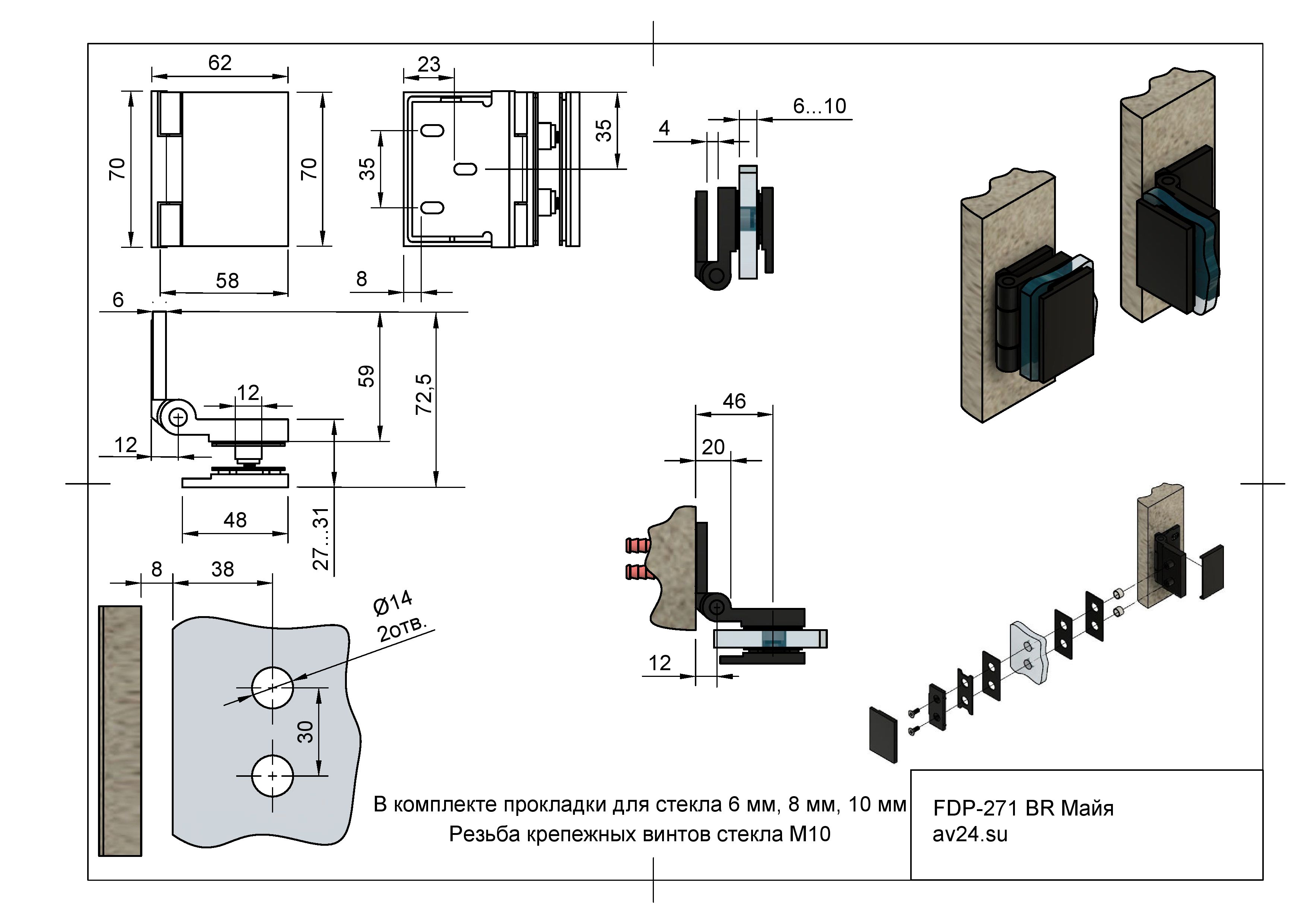 Рекомендации по использованию прокладок в зависимости от толщины стекла:
