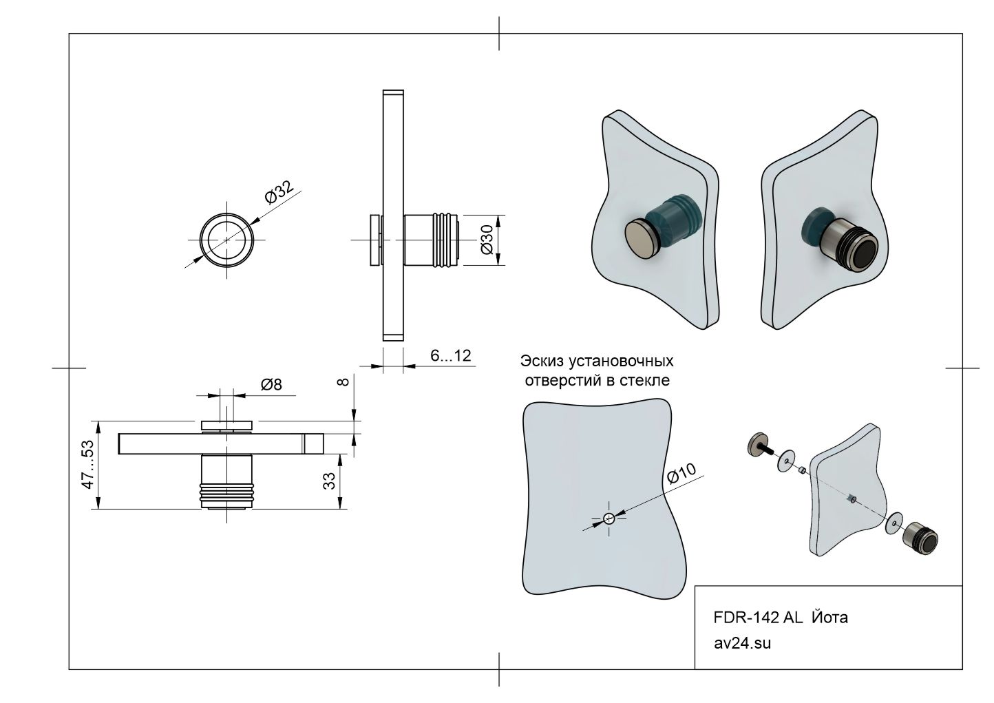 Ручка кноб для стеклянной распашной двери FDR-142 AL односторонняя ручка Йота. Используется для открывания и закрывания стеклянных дверей душевых кабин. Выполнена ручка для стекла из алюминия с резиновой вставкой. Подходит для установки на стекло толщиной 6-12 мм.