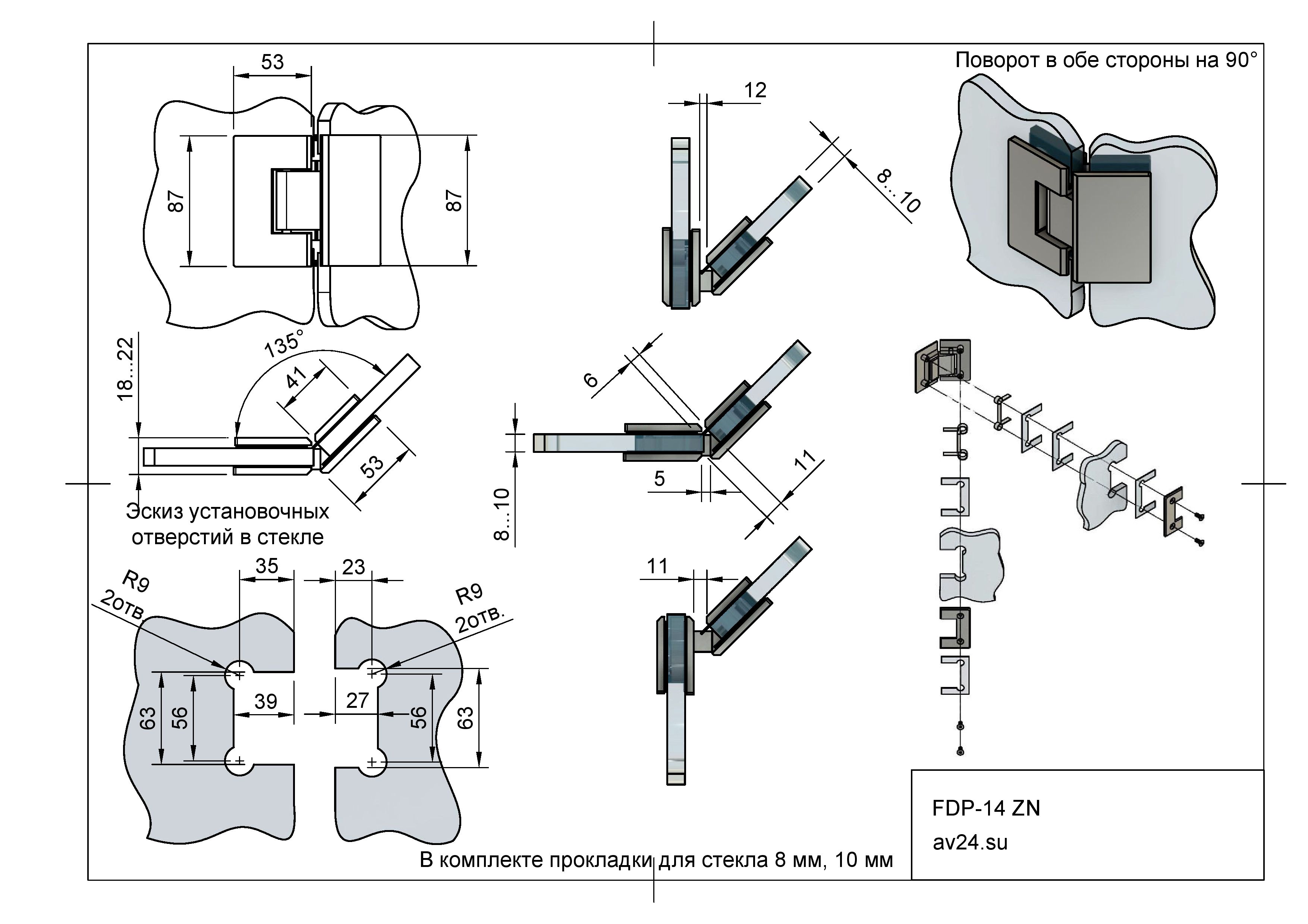 Петля для крепления стеклянной двери к стационарному стеклу под 135°, стекло-стекло, Альфа FDP-14 ZN/CR. Душевая петля Альфа 135° обеспечивает открывание в обе стороны по 90° в каждую. Предназначена для дверей из закаленного стекла толщиной 8, 10 мм. Выполнена из высококачественного цинкового сплава в отделке хром.