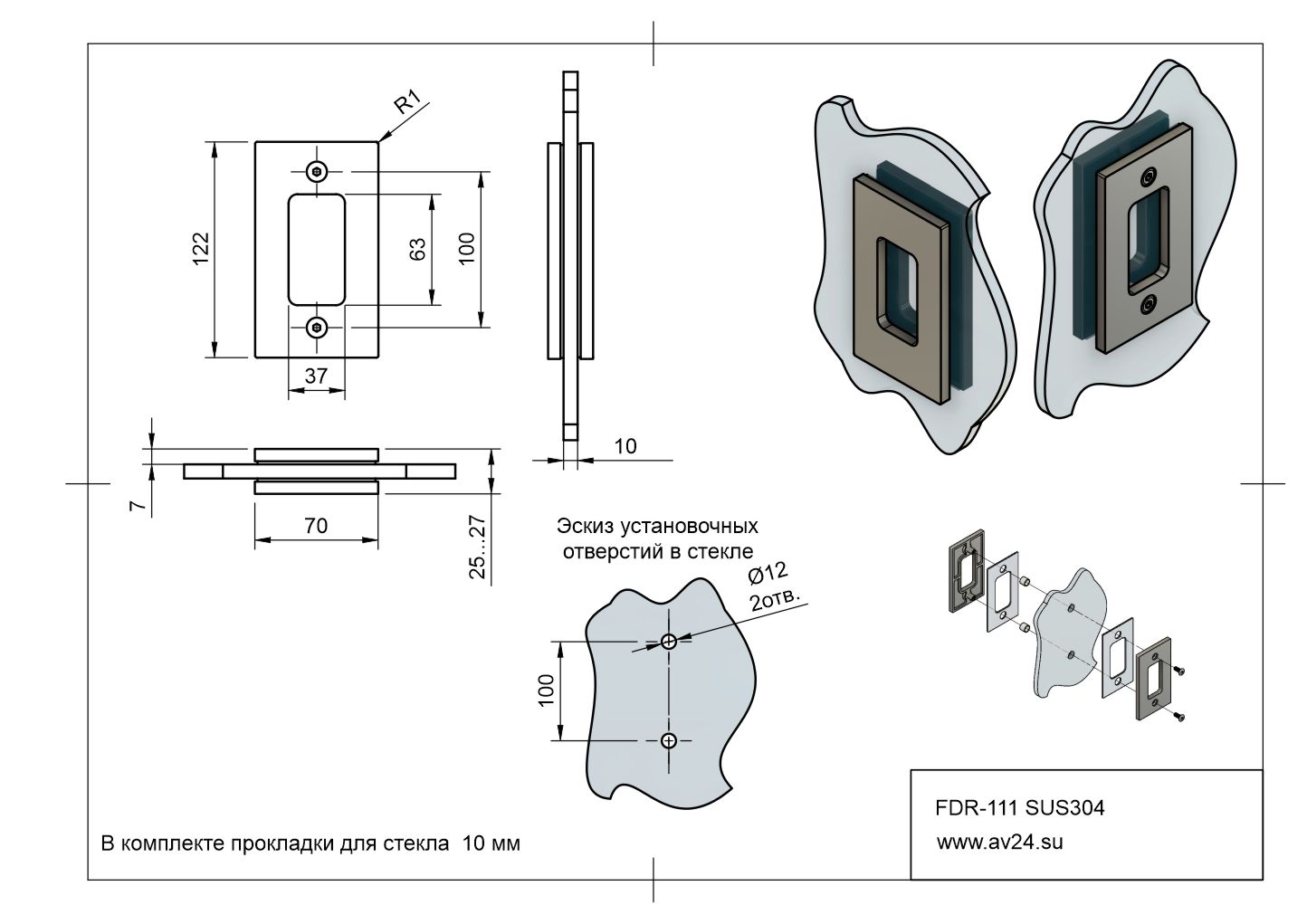 Ручка купе для стеклянной раздвижной двери FDR-111 SUS304/PSS Дриада. Используется для открывания и закрывания стеклянных дверей-купе душевых кабин. Выполнена ручка для стекла из нержавеющей стали в полированной отделке. Подходит для установки на стекло толщиной 10 мм. Размер прямоугольной ручки 122 х 70 мм. Межосевое расстояние 100 мм.