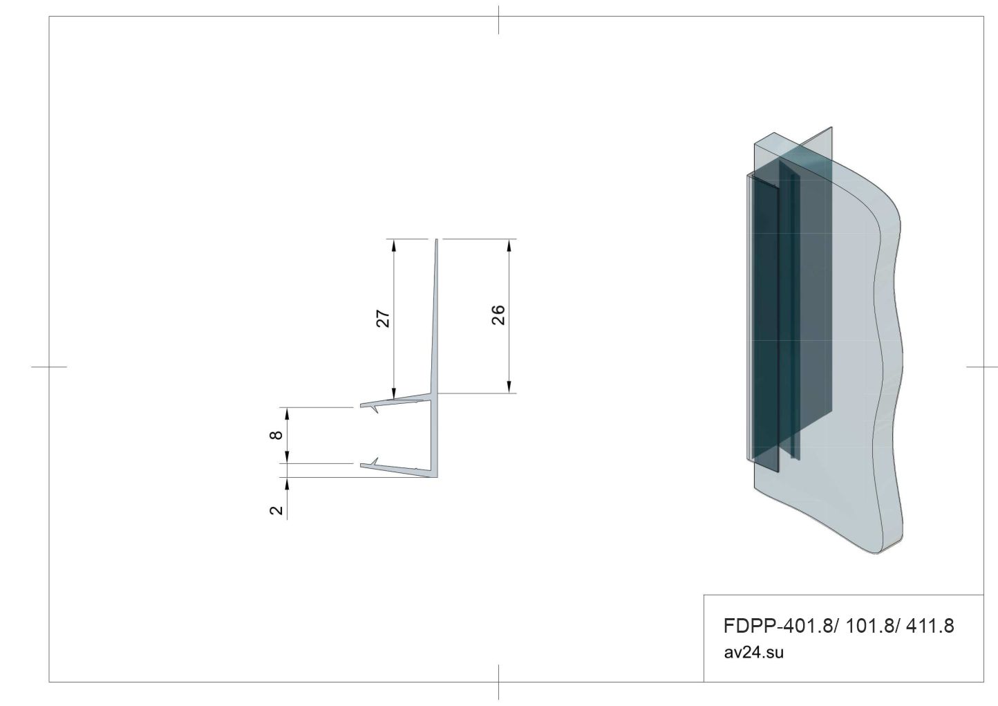 Уплотнитель для душевой FDPP-411.8 PVC/GG премиум класса серый. Оснащен усом (или лепестком) размером 26 мм. Изготовлен премиальный профиль из ПВХ с противогрибковым составом, используется для более эффективного исключения попадания воды между стеклянной раздвижной дверью и стационарным стеклом. Предназначен для стекла толщиной 8 мм. Применяется преимущественно для душевых кабин. Устанавливается на стекло при помощи нажатия.